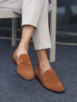 Step into refined casual elegance with these Camel Suede Penny Loafers, a perfect combination of comfort and class. Handcrafted from soft suede leather in a rich camel hue, these loafers deliver a sophisticated yet relaxed look ideal for year-round wear.